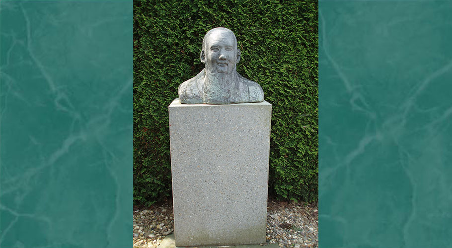 Confusius beeld op sokkel