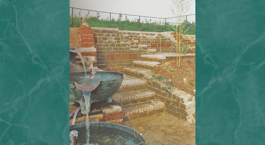 Tuinontwerp met waterpartij, en beeldenpartij "Ontmoeting"